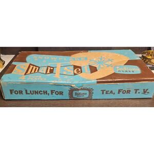 VTG INDIANA GLASS Snowflake T Set for 4 Smartset Snack Atomic hinde & Daucn 1960