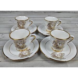 VTG INIAS Greece 24K Gold Greek Scene Demitasse Espresso Cups & Saucers Set Of 4