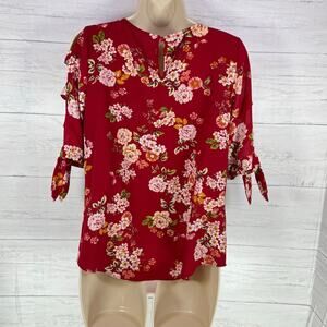 VTG IZ Byer y2k medium red floral women short sleeve blouse coquette cottage fal