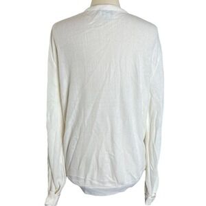 Vintage (80s, 90s) Classic Izod white sweater cardigan features an open V neckline and button front closure. Extra long sleeves, great for that iconic wrist fold.