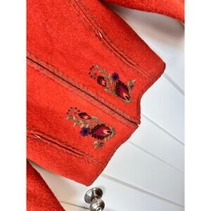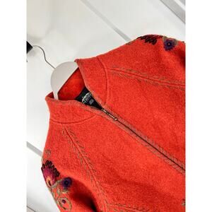 VTG Icelandic Designs Wool Blend Embroidered Zip-Up Sweater Orange Size Medium
