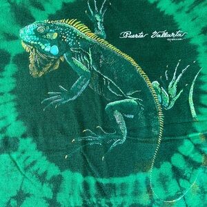VTG Iguana Nature Puerto Vallarta Mexico Tie Dye Souvenir Tee 90s Y2K Yazbek XL