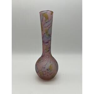 VTG Ilanit Hand Painted Glass Vase 1950's Israel Purple Watermark Spots Design
