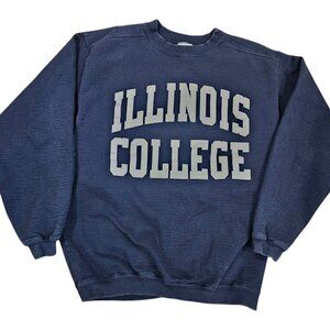 VTG Illinois College Navy Blue Crewneck Sweatshirt Pullover Sz M Medium Made USA