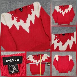 Selling Vintage VTG Imari Womens M Medium Acrylic Nylon Angora Knit Sparkle Red V Neck Sweater. You can see the condition from the photos. You can get further information from looking at what is shown in the photos. Pricing low to sell fast. I offer combined shipping on multiple purchases. All purchases should arrive within 2 to 9 days. International buyers should expect longer shipping time. If there are any issues please do the right thing and message me before leaving feedback.