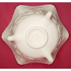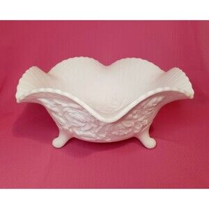 VTG Imperial Embossed Roses White Satin Milk Glass Bowl Scalloped Edge 3 Footed