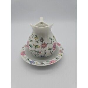 VTG Inarco Porcelain Floral Pitcher & Wash Basin Set Decorative Accent