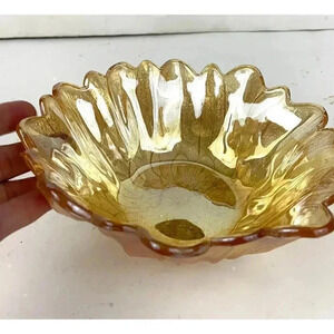 VTG Indiana Carnival Glass Amber Sunflower Bowl 7"