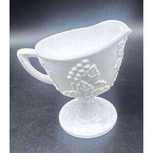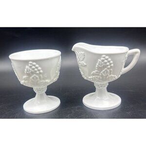 VTG Indiana Colony Harvest Grape White Milk Glass Pedestal Creamer Sugar Set