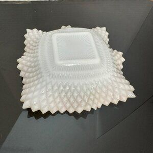 VTG Indiana Glass Iridescent Milk Glass Dish Diamond Point Sawtooth Edge 8"