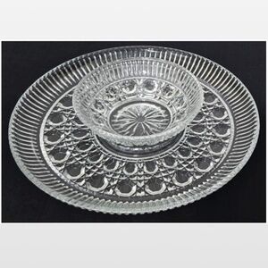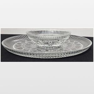 Vintage Indiana Glass Presentations The Crystal Collection clear pressed glass chip & dip bowel & platter 2 PC. set. Great for entertaining!