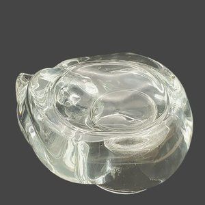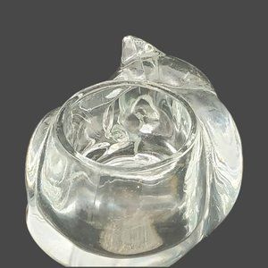VTG Indiana Glass Sleeping Cat Votive 5" Crystal Candle Holder Paper Weight USA.