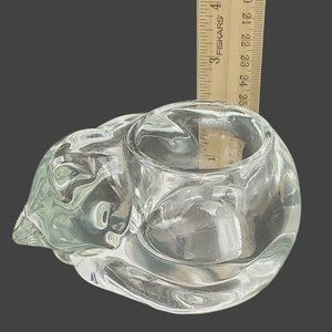 VTG Indiana Glass Sleeping Cat Votive 5" Crystal Candle Holder Paper Weight USA