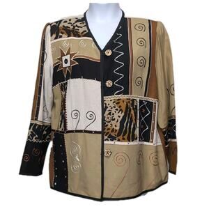 Indigo Moon Patchwork Jacket Women's Size 1X Animal Print Tapestry Brown Black