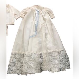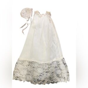 VTG Infant Christening Baptism 4 PC Dress Cape Cardigan Bonnet Ivory W/Lace OS
