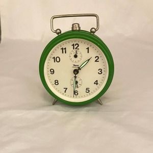 Vintage, rare color, hard to find, Insa brand clock from Yugoslavia. This clock really is in great condition. The hands do glow. The two wonders on the back are missing, but they can be replaced with any winders.