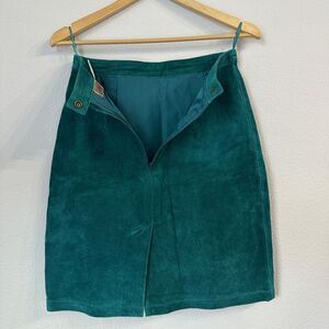 VTG International Leather Collection Skirt Suede 80s/90s Green 100% Leather 7/8