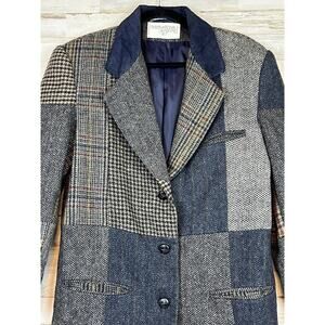 VTG International Scene Blazer Women's 7/8 Patchwork Houndstooth Old Money Wool