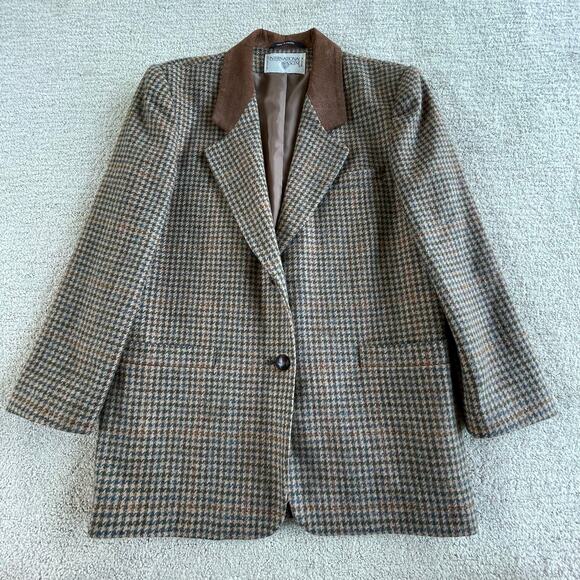 š„VTG International Scene Wool Houndstooth Tweed Blazer Jacket Preppy Women
