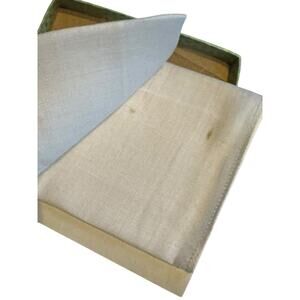 Two are in original boxes (top and bottom) and the other has only the bottom. There are stains on the handkerchiefs where tape was present. Everybody’s perception of condition is so please refer to pictures of the item for they are a large part of the description. Please zoom in on all pictures and see for yourself. This is a vintage item sold as is with all its original wear. Colors may vary due to lighting and screen settings.