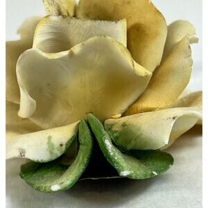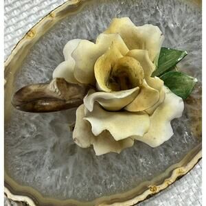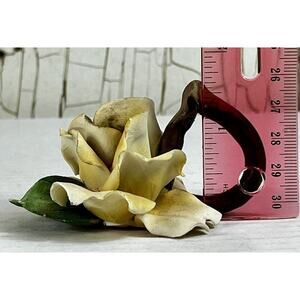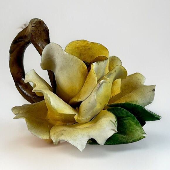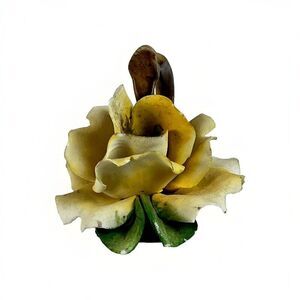 VTG Italian CAPODIMONTE MOLLICA Porcelain Hand Painted Yellow Rose Candle Holder