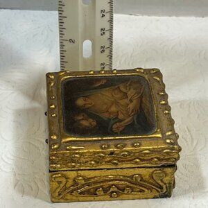 Small Vintage Italian Florentine Box Madonna and Child Image on top lid