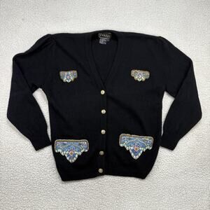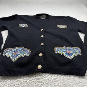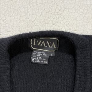 VTG Ivana Lambswool Angora Cardigan Sweater Sz L Black Beaded Gold Buttons Knit