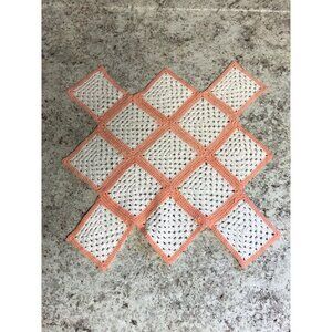 VTG Ivory & Peach Crocheted Rectangular Handmade Doily Artistic Design 16”x13”