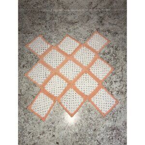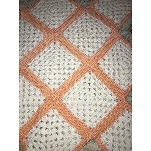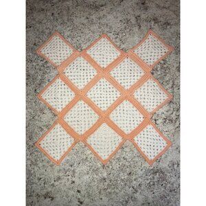 VTG Ivory & Peach Crocheted Rectangular Handmade Doily Artistic Design 16”x13”. Excellent pre owned condition.