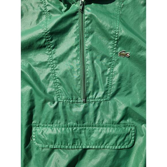 VTG Izod Lacoste Green Pullover Rain Windbreaker XL 80s Gator Hood Jacket Anorak