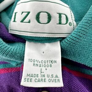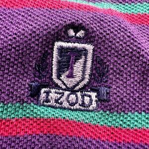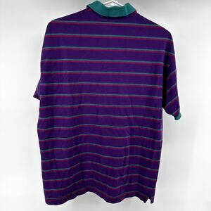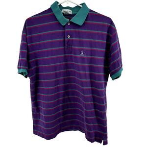 VTG Izod Striped Polo Shirt Embroidered Logo 100% Cotton Purple Green Large
