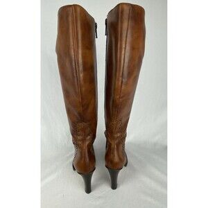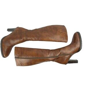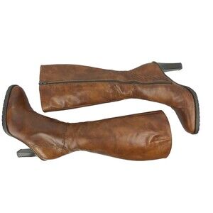 Vintage J.Crew High Heel Tall Boots in Women's size 5.5. In gorgeous marbled brown 100% Leather. Made in Italy. Side Zip. Rubber sole. Lovingly cared for by 1 owner. These have been cleaned and leather conditioned. Has very minor signs of wear, a very small scrape on front of left shoe and slight wear to heel, but overall excellent preowned condition. Does not come with original box.