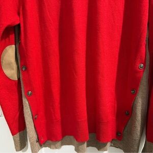 Chic and comfortable sweater by J. Crew. Features vibrant red and tan colors. Stylish button accents on the sides. Perfect for layering. P2P 22.5 L 30