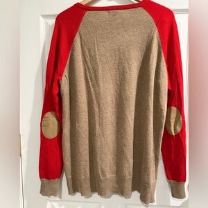 VTG J. Crew Red Tan Sweater Button Accents Elbow Patches Wool Angora Blend