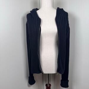 VTG J. Crew Ribbed Knit Full Zip Sweater Hoodie Heavy Cotton Slouchy Whimsigoth