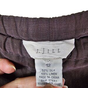 VTG J. Jill Silk Linen Blend Pull On Pants 12 Elastic Waist Drawstring Relaxed