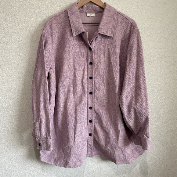 VTG J. Jill Womens XL Corduroy Floral Purple Shacket Jacket Gorpcore Pastel Boho Girly Outdoors