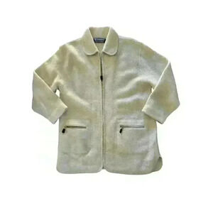 J Percy Marvin Richards Women's Coat Wool Collar Pockets Zip Up Cream Size S.