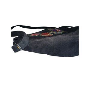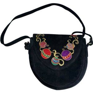 VTG J. Renee Suede Crossbody Bag Purse Black Embroidered Christmas Ornaments