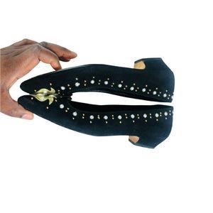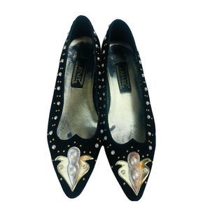 VTG J. Renee black suede pearl accent studded pointed to kitten heel shoes