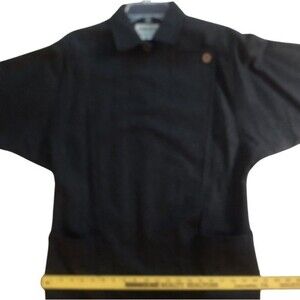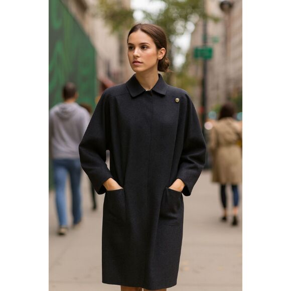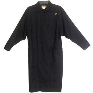 VTG JAEGER London Wool Coat Dress Womens 12 Charcoal Dolman Long Sleeve Pockets
