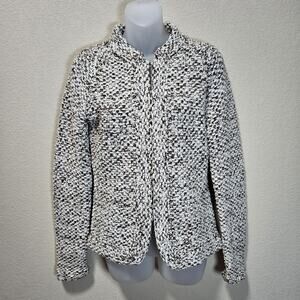 VTG J.Crew Womans Handknit Lambs Wool Cardigan Sweater Marble Brown Fisherman XS