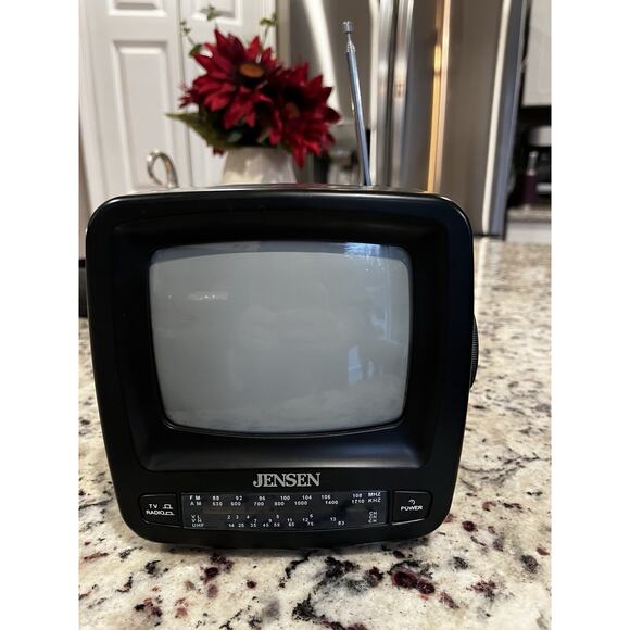 VTG JENSEN J53-BWR Portable Black & White TV CRT AM/FM 5” Tested - WORKS! READ