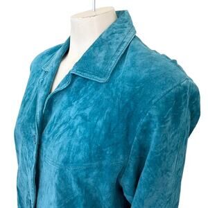 VTG JESSICA HOLBROOK Washable Suede Button Front Blazer Coat in Teal Blue SZ L