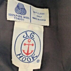 1980s vintage J.G. Hook brown and red multicolored tweed-Style blazer in very good vtg condition! Made with 100% textured wool (lined for comfort - not w/ wool). Has shoulder pads, five front buttons, two front pockets, sleeve button details, and a cinched waist with button details. A few other colors mixed in. Great for the office, especially during cooler weather. Size vintage 12 - Ptp is about 18 inches when button closed, length approximately 24 inches, and sleeve length approximately 24 inches from the top of the blazer.