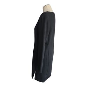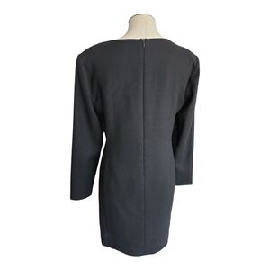 vintage wool dress, 80s black dress, elegant petite dress, formal office wear, sheath midi dress, vintage LBD, classic retro dress, wool crepe dress
