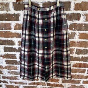 VTG JG Hook Womens Size 4 Midi Skirt Wool Tartan Plaid Brass Buttons Waist 24"