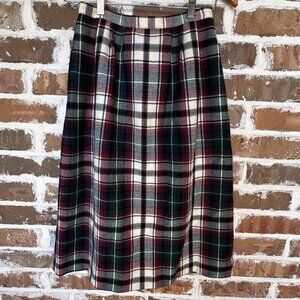 Elevate your workwear wardrobe with this vintage JG Hook midi skirt. The skirt features a plaid pattern in a multicolor scheme, with button accents and a zip closure. Perfect for business occasions, the skirt is made of lightweight wool flannel and is dry clean only.