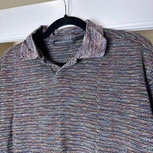 VTG JHANE BARNES Multi-Colored Striped Polo Collared Shirt - Medium