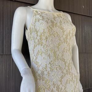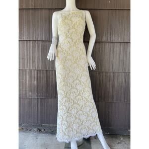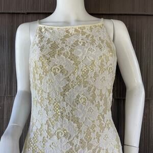 🔥VTG J.Harris Gold Sequins Lace Backless Mermaid Formal Evening Gala Dress 4-8